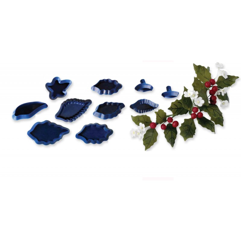 Set cutter, fara ejector, in forma de frunze mixte , din plastic. Se utilizeaza pentru a decupa pasta de zahar, gum paste sau fondant. Setul este format din 10 piese.