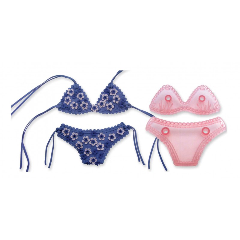 Set cutter, fara ejector, in forma de costum de plaja , din plastic. Se utilizeaza pentru a decupa pasta de zahar, gum paste sau fondant. Setul este format din 2 piese.